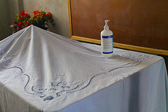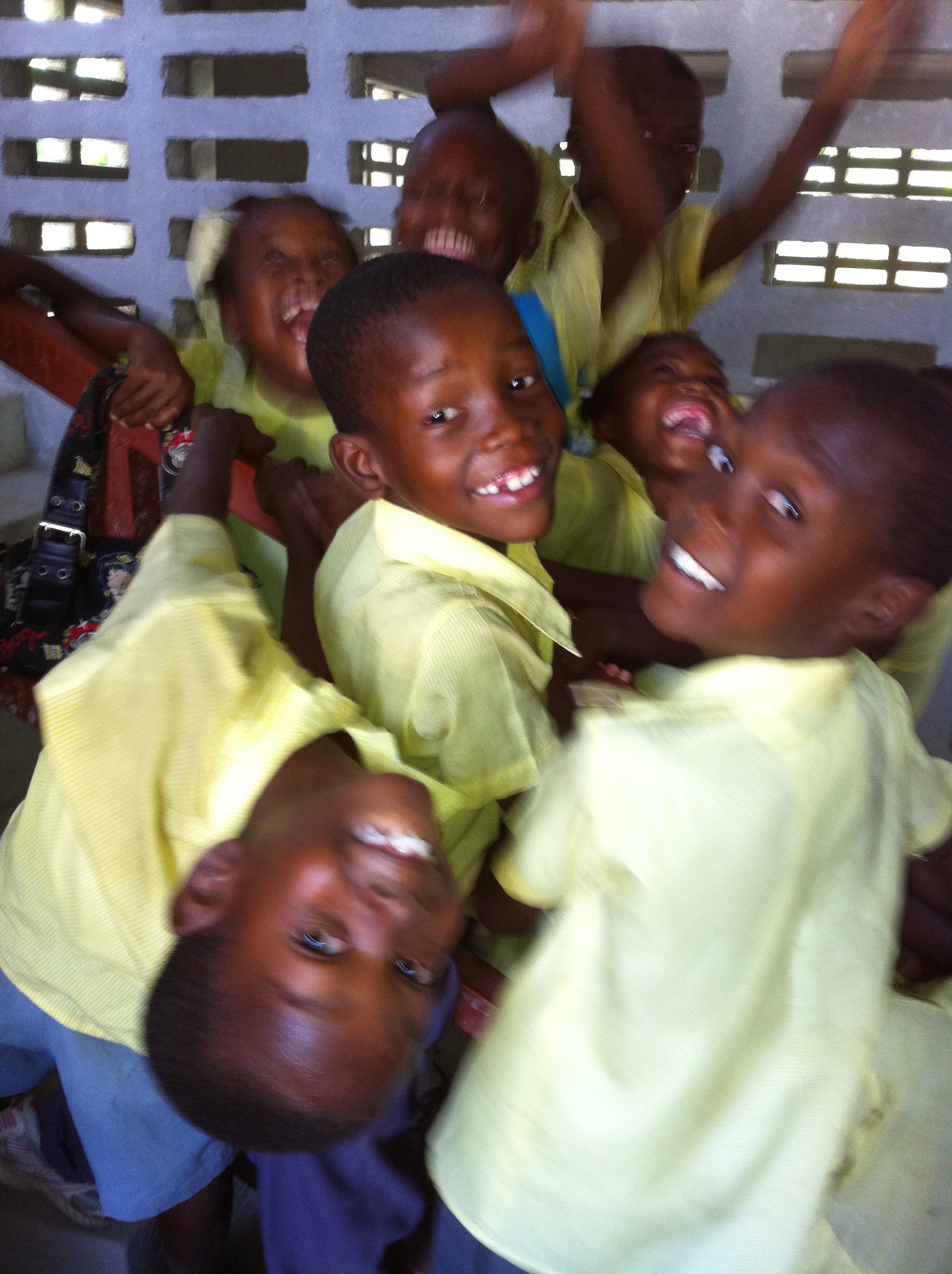 Walking down the stairs we are met with numerous greetings of “Bonjour”accompanied by brilliant smiles.  The children are always happy to see our faces but Mason and Maggie’s seem to be the main focus of attention.  Everyone shuffles into one of the classrooms which has temporarily been transformed into a church.  Gone are the classroom desks and papers, in their place are 6 rows of pews hand placed and straight as an arrow.  In front there is a small podium and table with a cloth covering what at home would be the bread and communion chalice. In Haiti because of the many illnesses one can acquire, bread remains the same but wine/grape juice is in dispensable shot glass sized cups then covered for safety.