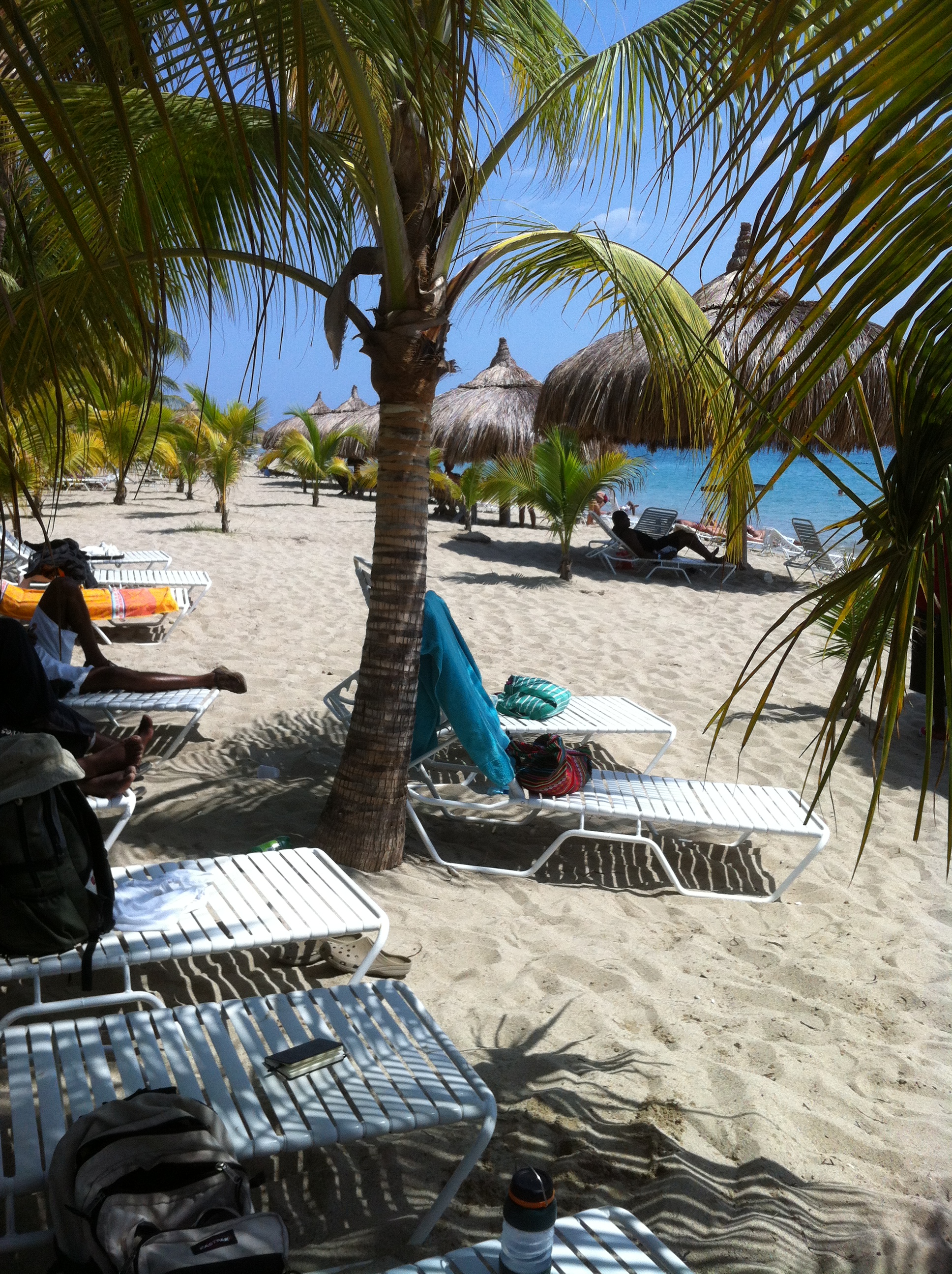 $40.00 dollars apiece was our one way ticket to beach and buffet! Strolling through the main area past the bar, along the walkway by the pool one could distinctly pick out different languages being tossed about the pool deck.  I picked up quite a bit of Portuguese, a little Spanish and of course French-Creole. But the main thing I noticed was no conversations were taking place in English.  Our group strolled along the beach until we came upon a coconut tree with a few chairs underneath.  Gathering a few more chairs to claim our territory, most of us were stripped to our swimsuits and in the water before the sand settled.  It was warm, clear, salty and beautiful.  We swam out to the buoys then back several times. Some floated around while others dove under looking for shells and fish; Standing in the water felt like a world away from where we were no more than 90 minutes prior. To be quite truthful it felt a little shameful. Who were we to come here and act like vacationers? We came here to work, to help the impoverished, to create a physical and spiritual difference in not only our own lives but the citizens for who we serve; The people of Leveque.