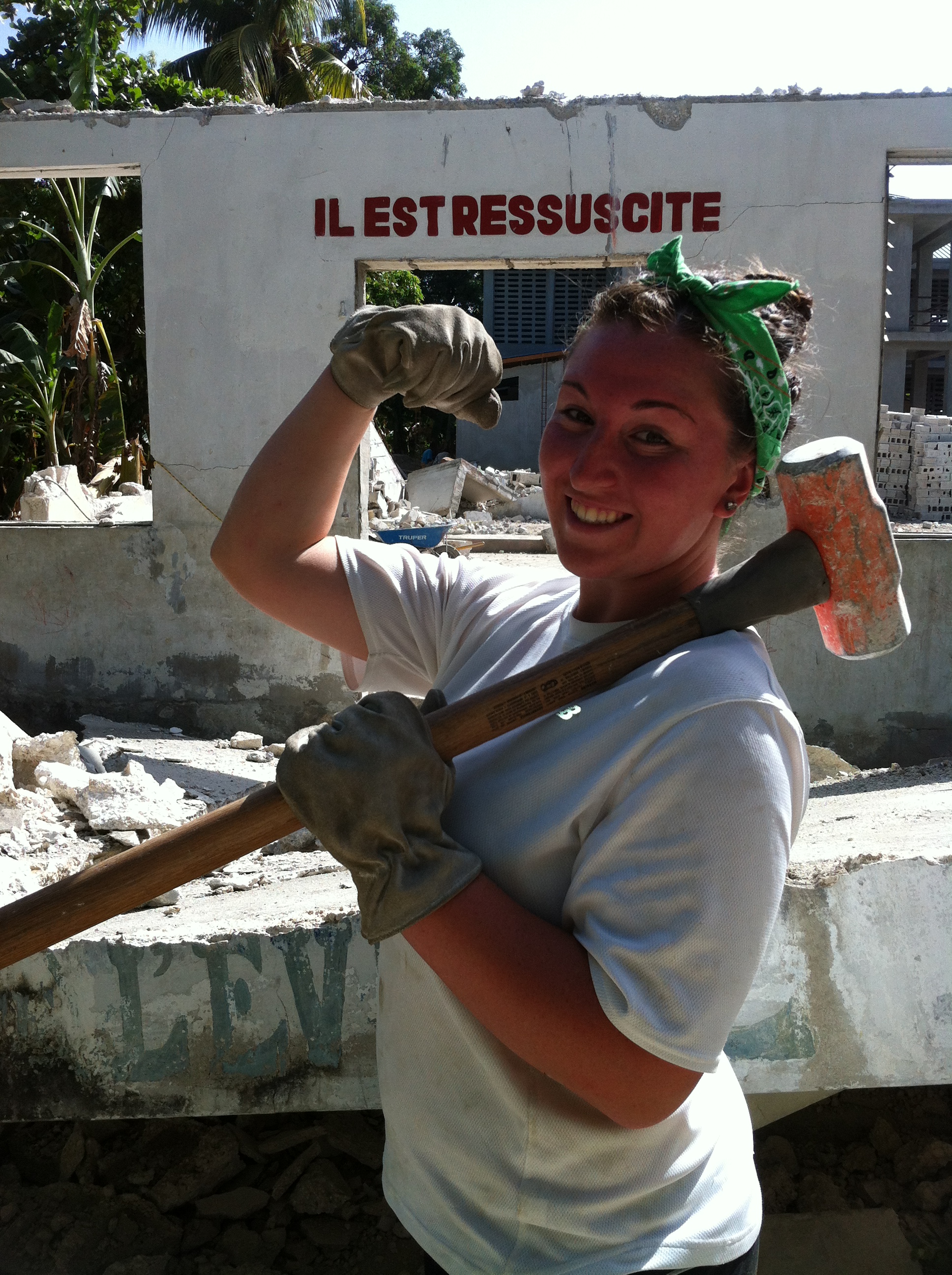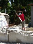 While finishing up last night it still bothered me the way our combined group began to fall apart once “Bald guy” appeared then started barking orders to the Haitian workers.  Not being one to let things go I cornered Caz asking him questions in regards to the incident hoping it would help me better understand what had happened.  According to Caz; (my interpretation) after the earthquake Bald guy lost some of his family and his home, while others were running about not know what to do, he took it upon himself to start uncovering people trapped in the debris.  He has orchestrated the removal of many earthquake damaged buildings through nothing more than sheer will, muscle and desire.   The workers look up to him because of his reputation; definitely feeling like the right “call” had been made in allowing him to take down the portico, it all made complete sense to me now.  Pride is a powerful thing and this man held enough for our entire crew, and with that I salute you Bald guy.  You were grumpy, slightly mean and unorthodox in your methods but you were completely in the right.